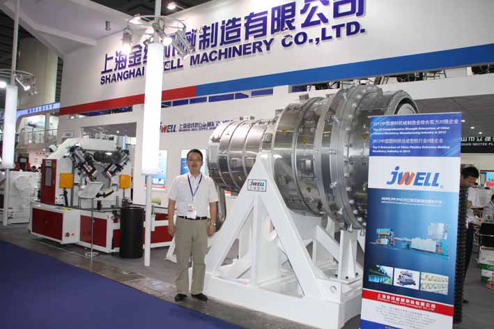 展會上我們展示了公司強(qiáng)有市場力的伺服直驅(qū)單螺桿擠出機(jī)、橡膠擠出機(jī)、管材大模具、全自動片材收卷機(jī)、側(cè)開口撕碎機(jī)、管材無屑切割機(jī)、7米大輥筒、擠出平模頭及中空成型機(jī)等生產(chǎn)線產(chǎn)品,受到了新老客戶的肯定。