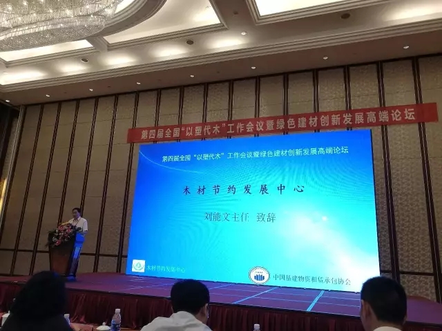 同時(shí),木材節(jié)約發(fā)展中心主任劉能文先生也發(fā)表致辭,他向大家介紹了木材發(fā)展中心的發(fā)展歷史,講解了我國(guó)森林資源節(jié)約代用取得的成績(jī)和面臨的挑戰(zhàn),并在“以塑代木”節(jié)約森林資源方面提出了新的希望和要求。