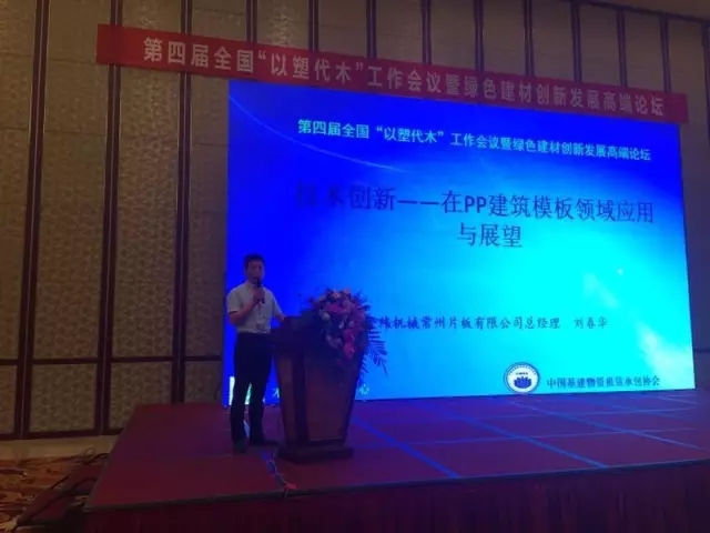 在專(zhuān)題報(bào)告部分,常州金緯機(jī)械片板設(shè)備制造有限公司總經(jīng)理劉春華做了“技術(shù)創(chuàng)新--在pp建筑模板領(lǐng)域應(yīng)用與展望”的精彩演講。