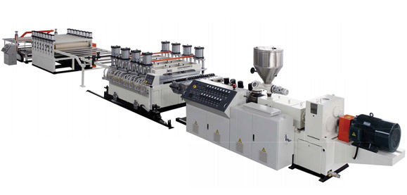 公司推出的新一代高產量PVC結皮發(fā)泡板生產線-用于生產線櫥柜板、家具板、廣告板、木塑建筑模板、木塑地板等。