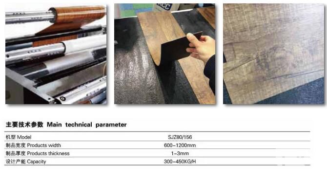 生產(chǎn)線由擠出機(jī)擠出地板基材,再經(jīng)過一套六輥復(fù)合機(jī)對(duì)基材與印刷層,耐磨層,防滑層進(jìn)行同時(shí)復(fù)合,通過對(duì)放卷張力,耐磨層預(yù)熱的精確控制,達(dá)到放卷時(shí)不起皺,不收縮,不變形等效果,擠出復(fù)合生產(chǎn)效率高,產(chǎn)品質(zhì)量穩(wěn)定。
